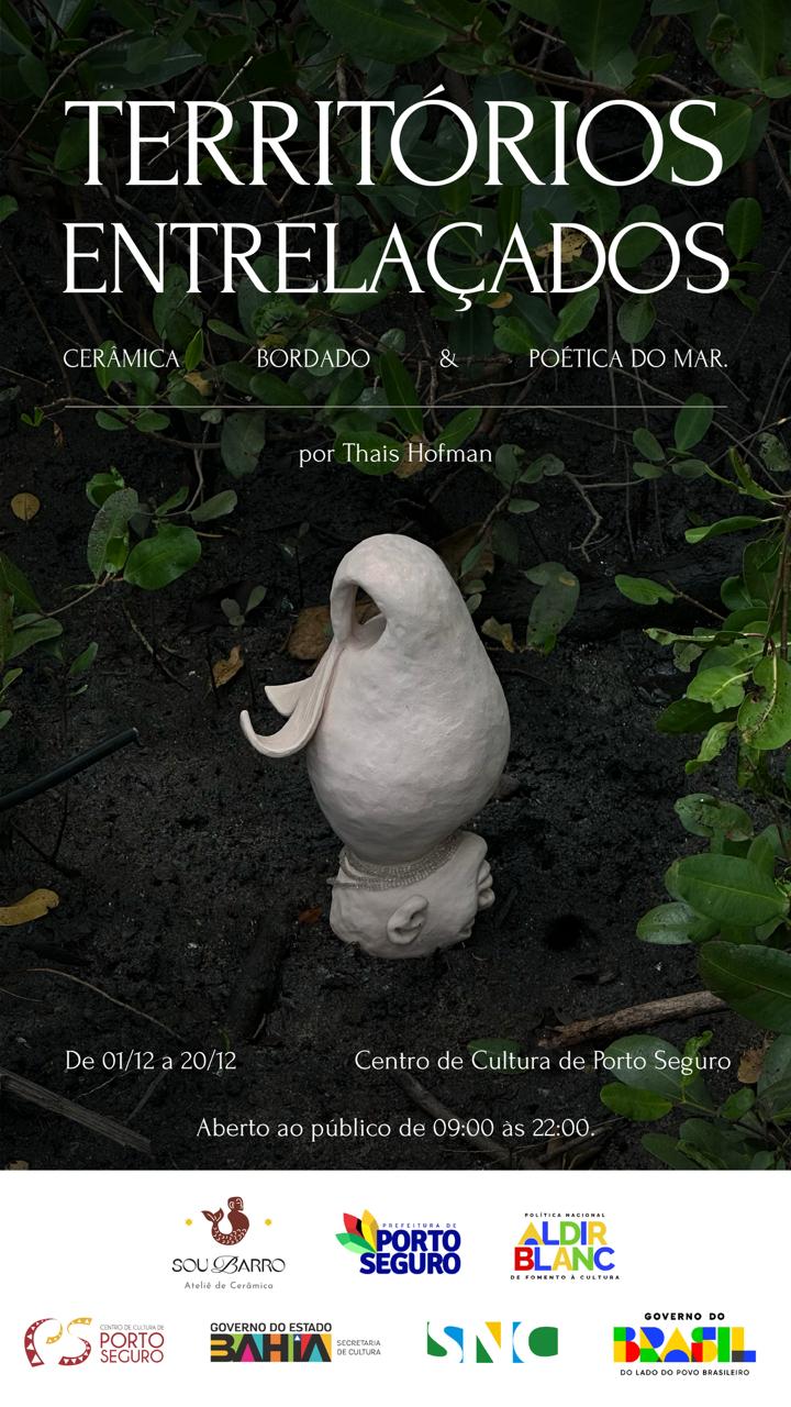 A exposição “Territórios Entrelaçados”, da artista Thais Hofman, estará aberta ao público de 1º a 20 de dezembro, no Centro de Cultura de Porto Seguro. A mostra, que conta com apoio da Prefeitura por meio da Superintendência de Cultura e da Secretaria de Turismo, apresenta um conjunto de obras que dialogam com o território costeiro, reunindo cerâmica, bordado e fotografia para revelar memórias, tradições e afetos presentes na relação histórica das comunidades com o mar.