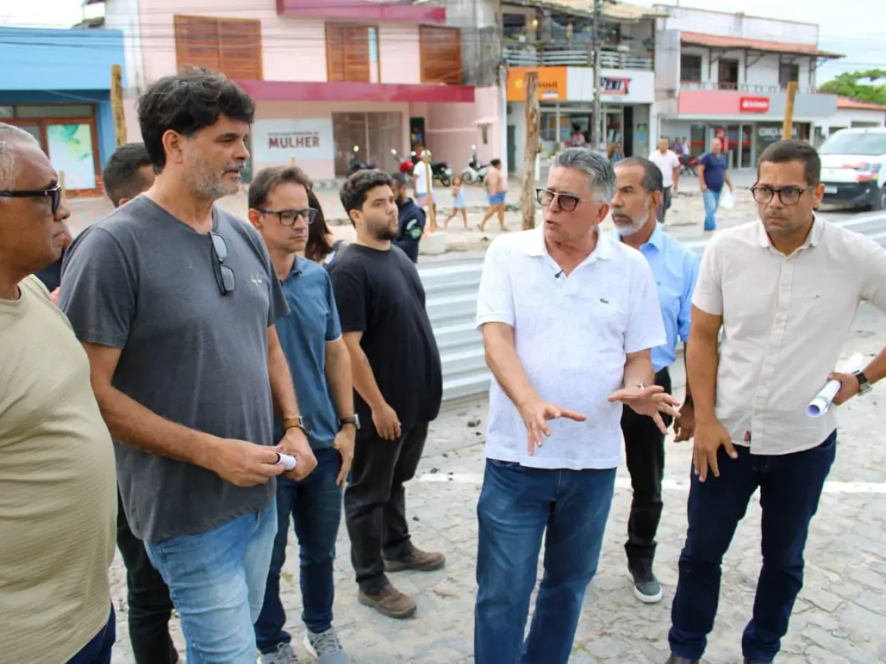 O prefeito de Porto Seguro, Jânio Natal, acompanhado de sua equipe, visitou na tarde desta quarta-feira, 24/09, as obras de requalificação da Rua Pero Vaz de Caminha, no Centro, e as de revitalização da Praça ACM. Durante a visita, o gestor caminhou pelo local, conversou com comerciantes e cobrou celeridade e qualidade na execução dos serviços.