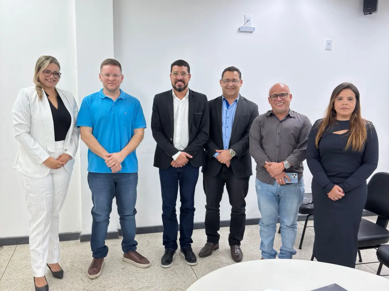 A reunião foi solicitada pelo gestor municipal e contou com a presença da procuradora do município, Dra. Márcia Costa, da advogada Maiane Santana Ferreira, do secretário municipal de Educação, Gutemberg Pellégrini, e do coordenador de Gabinete, Geilton Pereira.