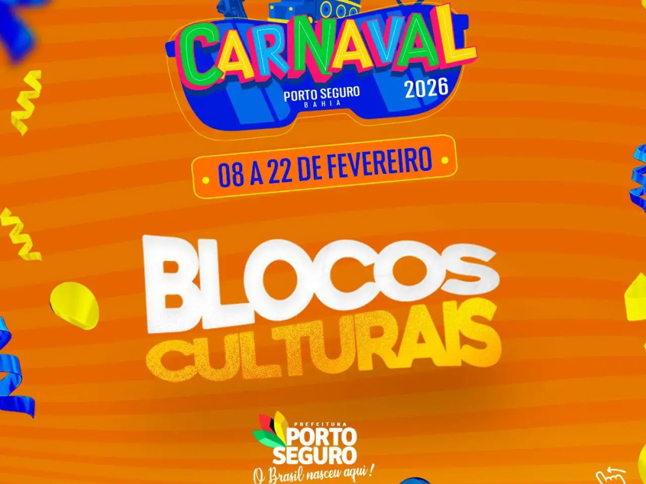 Porto Seguro entra de vez no clima do Carnaval Cultural 2026 com cerca de 30 blocos espalhados por diferentes pontos da cidade. É a folia na mais pura essência da rua, cheia de identidade, com marchinhas, samba, axé e muita irreverência. Com apoio da Prefeitura, os desfiles contam com estrutura, logística e a valorização de artistas e grupos contemplados pelo Edital Cultural Municipal.