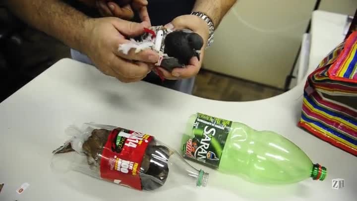 Por sorte do animal, e azar de Cristielli, os policiais estranharam o voo fracassado. A equipe deixou a viatura e foi ao encontro da jovem, que trazia outra ave imobilizada em uma garrafa PET, de fundo cortado. Presa às asas do animal, estava uma "mochilinha" com um bateria, chips e R$ 427.