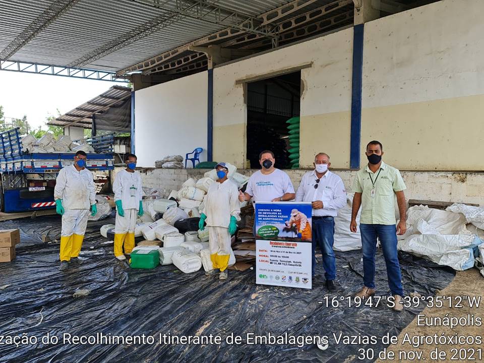 Em dois dias de ação (30/11 e 01/12), o recolhimento itinerante realizado em Eunápolis registrou a participação de 48 produtores, que devolveram precisamente 11 toneladas e 460 quilos de embalagens vazias e restos de defensivos agrícolas existentes nas propriedades rurais do município.