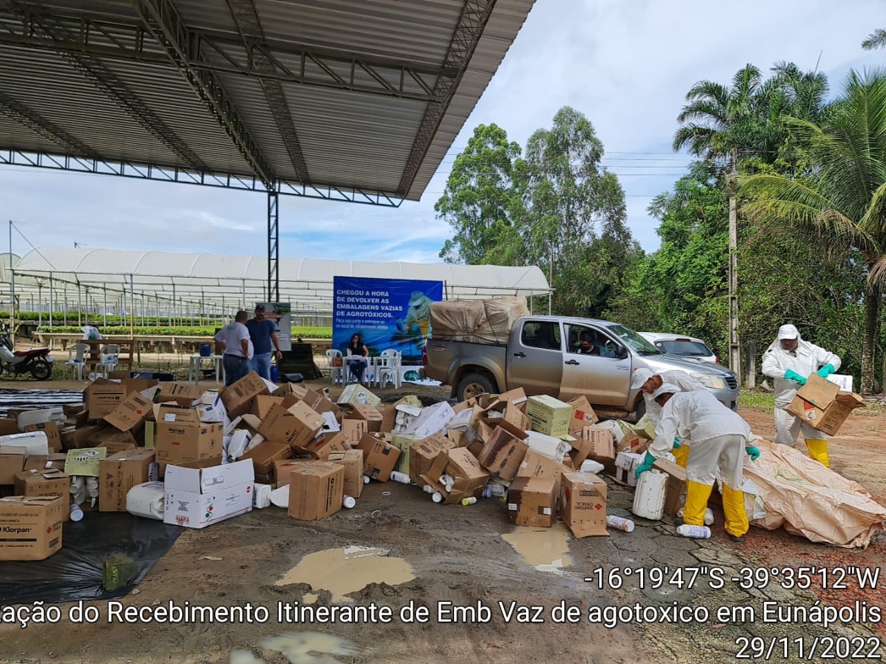 Na finalização da campanha itinerante realizada anualmente nos municípios de Eunápolis, Itabela, Porto Seguro e Itamaraju pela Associação de Revendedores de Insumos Agropecuários (Assoagres) e pelo Instituto Nacional de Processamento de Embalagens Vazias (inpEV), foram recolhidos em Eunápolis nos dias 29 e 30/11 um total de 10.880 quilos de embalagens vazias de defensivos agrícolas.