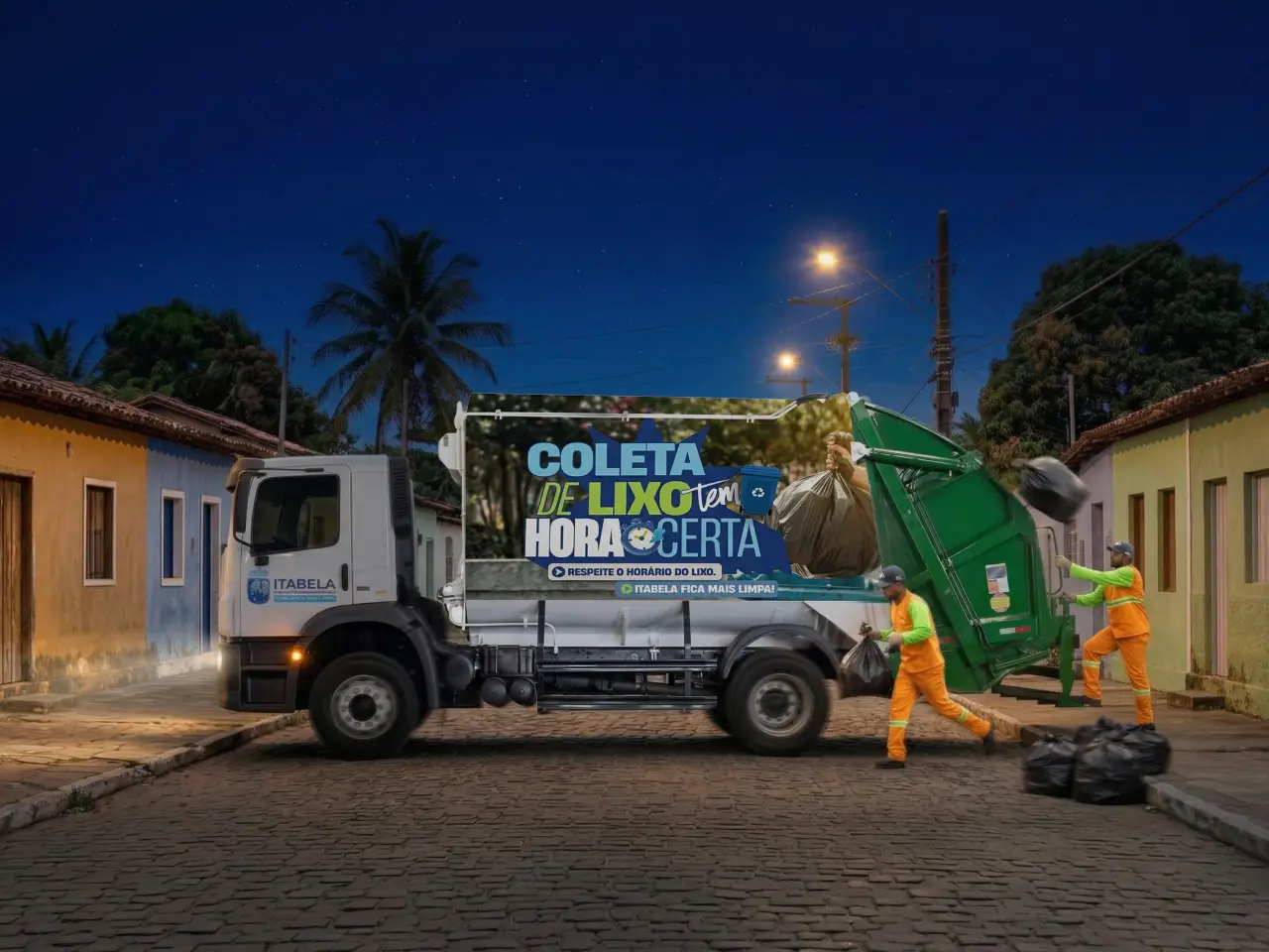 A Prefeitura de Itabela informa que, a partir do dia 6 de abril, o serviço de coleta de lixo passará a ser realizado no período noturno em todos os bairros do município.