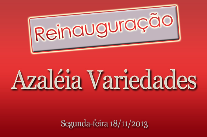 A direção da nova Azaléia Variedades convida a todos para conferirem as novidades e promoções e para participar do coquetel de reinauguração.