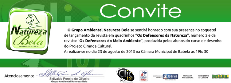 CONVITE - Lançamento de revista em quadrinhos; Grupo Ambiental Natureza Bela.
