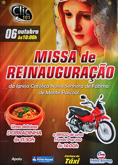 MONTE PASCOAL – Reinauguração da Igreja Nossa Senhora de Fátima