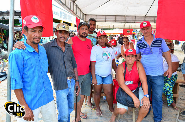 O grupo do MST dividiu espaço com os feirantes de todos os sábados. Produtos como farinha, coco, aipim, verduras, frutas, entre outros, produzidos sem agrotóxicos, foram comercializados.