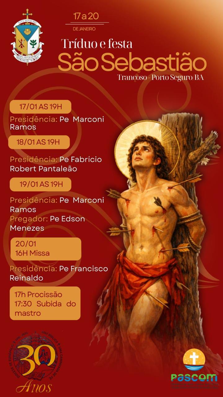 Na abertura, amanhã (17/01), a partir das 19h, acontece a missa de abertura na Igreja São Sebastião no famoso Quadrado, ministrada pelo padre Marconi, com bênção dos festeiros Dona Glória Possa e André Asa, marcando o início oficial das celebrações e convidando todos a viverem este começo com respeito e participação.