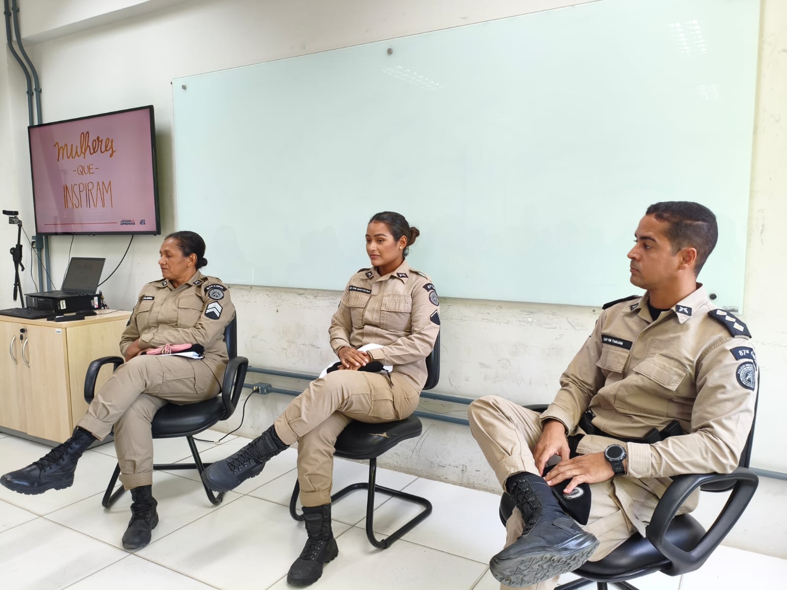 Durante o encontro, os poiliciais compartilharam experiências da carreira na segurança pública, destacando os desafios e conquistas das mulheres que atuam na Polícia Militar da Bahia.