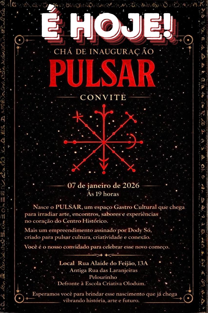 Salvador ganha, no início de 2026 um novo ponto de encontro para quem acredita que comida, arte e convivência caminham juntas. No dia 07 de janeiro de 2026, às 19 horas, na Rua Alaide do Feijão, 13A, antiga Rua das Laranjeiras, defronte a Escola do Olodum, será inaugurado o PULSAR, um espaço gastronômico e cultural idealizado por Dody Só, que nasce com a proposta de reunir sabores, afetos, ideias e expressões artísticas em um ambiente vivo, plural e provocador.