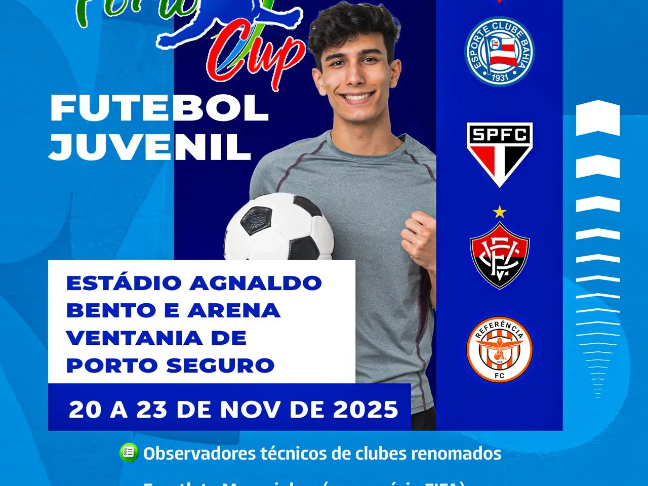 Entre os dias 20 e 23 de novembro, Porto Seguro realiza a 2ª edição do PortoCup, um dos maiores campeonatos de futebol de base da Bahia. O evento reunirá mais de 70 equipes nas categorias sub-10 a sub-16, totalizando mais de mil jovens atletas vindos de diversos estados brasileiros.