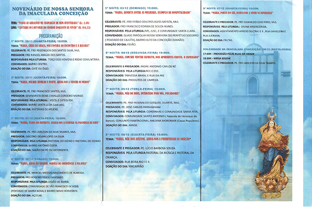 Iniciada dia 29/11, segue com uma intensa programação todas as noites a partir das 19h00, o Novenário de Nossa Senhora da Imaculada Conceição, em Guaratinga.