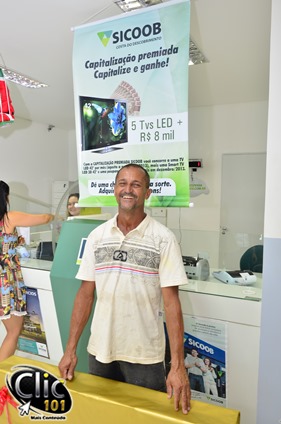 O pedreiro João Almeida, pai de três filhos que residem atualmente em Portugal, disse da sua felicidade em ser cliente do Sicoob há mais de um ano, participar da promoção, e mais feliz ainda por ter sido contemplado, agradecendo pela atenção sempre muito especial dispensada de igual modo a todos os clientes pela gerência e pelas funcionárias.