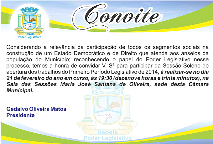 Convite da Câmara Municipal de Itabela a toda sociedade itabelense.