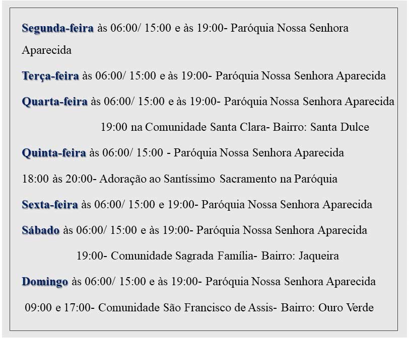 Veja abaixo a nova grade de programação das missas.