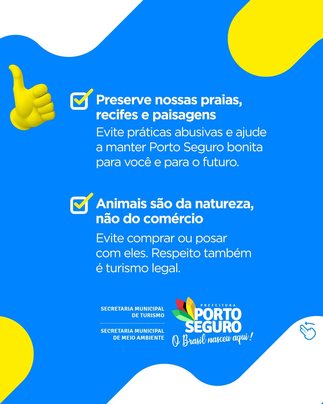 Às vésperas da alta temporada, Porto Seguro, um dos destinos mais visitados do Brasil, lança a campanha Turismo Legal: um jeito consciente de viver Porto Seguro, trata-se de uma iniciativa conjunta entre a Secretaria Municipal de Turismo e a Secretaria de Meio Ambiente e Causa Animal (Semac). A ação busca orientar turistas e moradores sobre práticas sustentáveis, respeito às normas locais e cuidados com a natureza, reforçando o compromisso do município com a preservação ambiental e o turismo responsável.