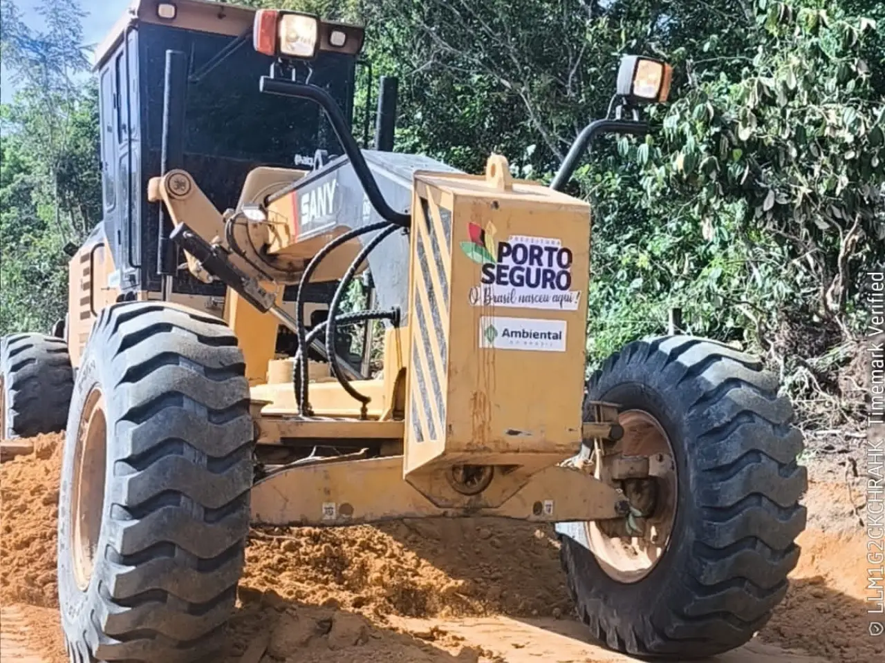 As equipes de manutenção das estradas da Prefeitura de Porto Seguro estão realizando serviços de patrolamento nas estradas vicinais da comunidade Bom Jesus, nas proximidades de Trancoso.
