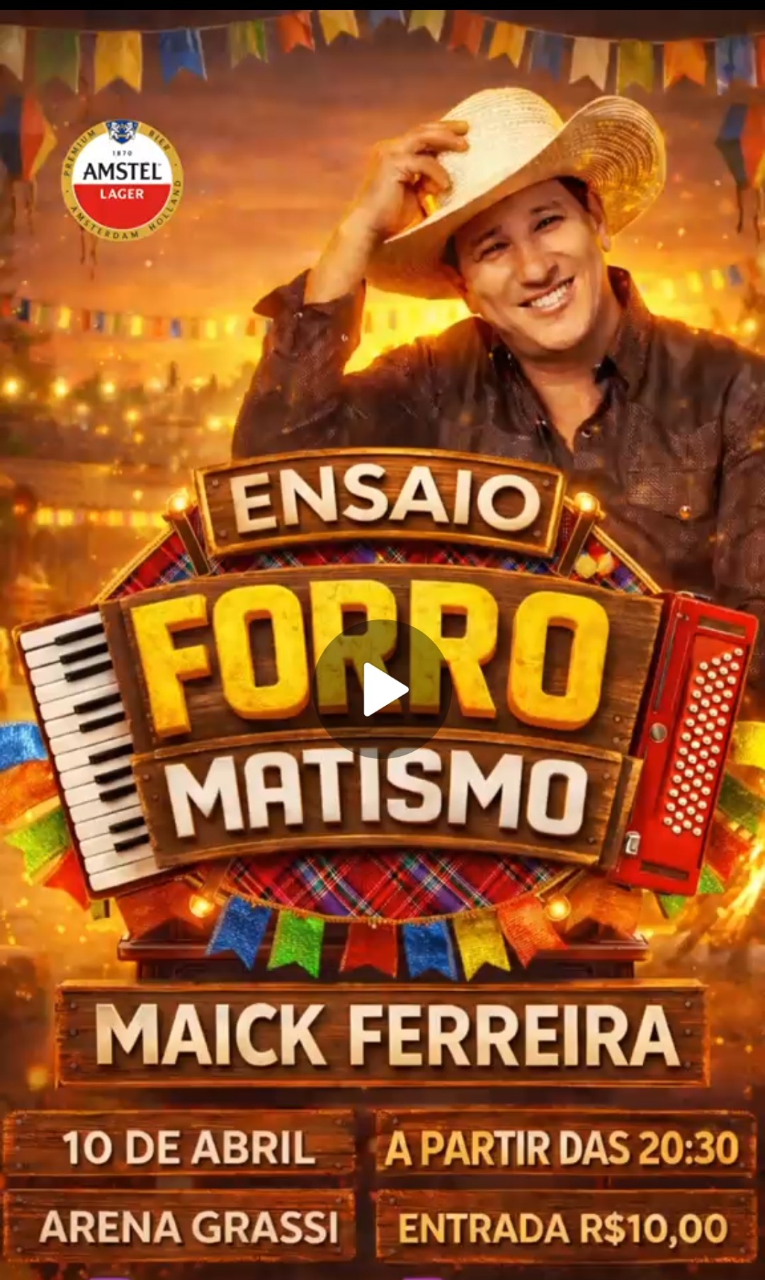 Convido Vc, familiares e amigos para o 1° Ensaio do Forrómatismo, dia 10 de abril, na Arena Grassi. É um aquecimento para a grande festa do Forrómarismo.