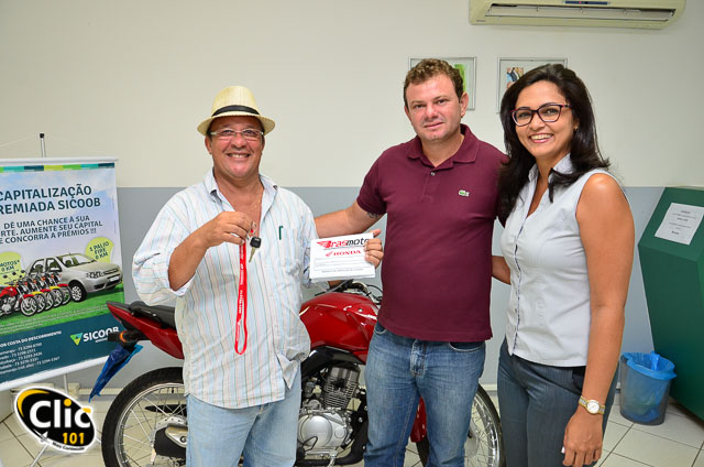 Sicoob comemora 4 anos em Itabela e entrega motocicleta ao ganhador da capitalização premiada