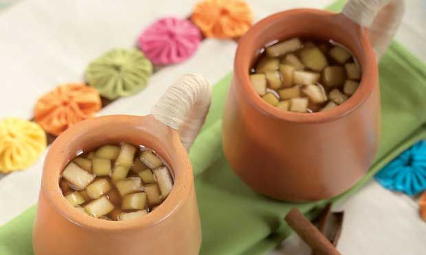 2. Coe, coloque a bebida novamente na panela, acrescente a maçã e deixe no fogo até começar a ferver. Mantenha a bebida tampada e quente ao servir.