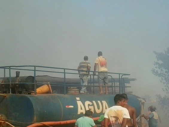 O fogo foi controlado com água trazida em baldes pelos populares e em carros pipas, além de máquinas que auxiliaram no manuseio do material em chamas, manobras que impediram que o fogo se espalhasse.
