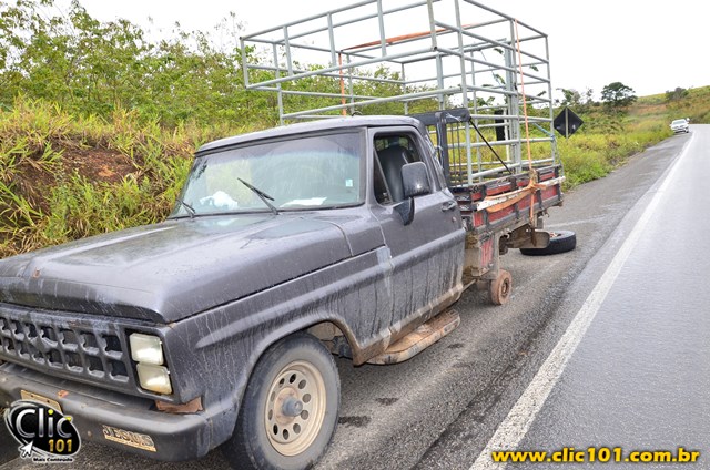 No trecho da BR 101, logo após o Posto Vitória, na ladeira e curva de descida do Rio dos Frades, a pickup placa policial JLV 0453 Eunápolis, com gaiola, soltou a roda trazeira na descida da ladeira do Rio dos Frades, atingindo dois veículos: caminhonete volksvagem placa ODM 0737 Vitória/ES e o automóvel placa GOE 6644 Belo Horizonte/MG.