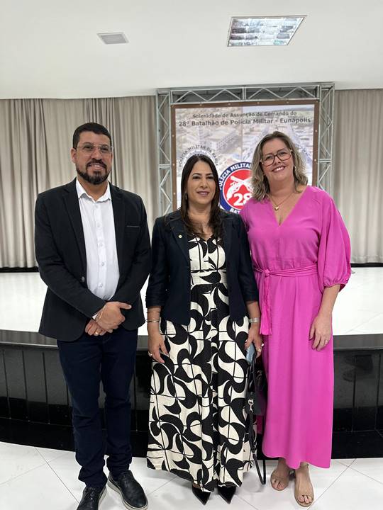 O prefeito esteve acompanhado da deputada estadual Cláudia Oliveira e da presidente da Câmara Municipal de Itabela, vereadora Simone Sossai, reforçando o compromisso do município com a segurança pública e a integração com as forças policiais.