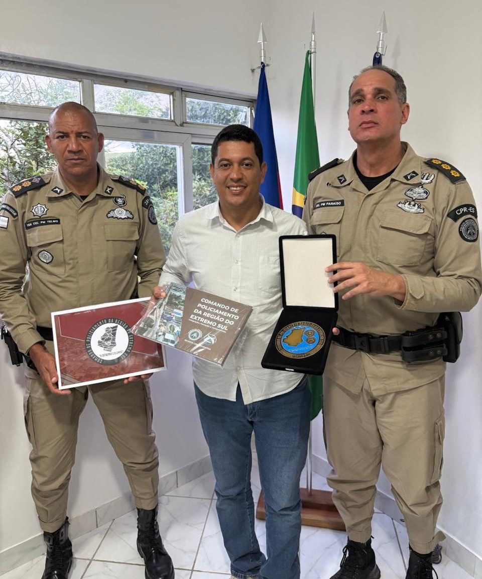 Na última terça-feira (07/10), o Comandante do 28º Batalhão de Polícia Militar, Tenente-Coronel PM Telmo, acompanhou o Coronel PM Paraíso, Comandante do Policiamento da Região Extremo Sul, em uma visita institucional ao município de Guaratinga.