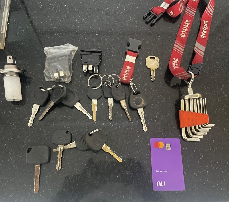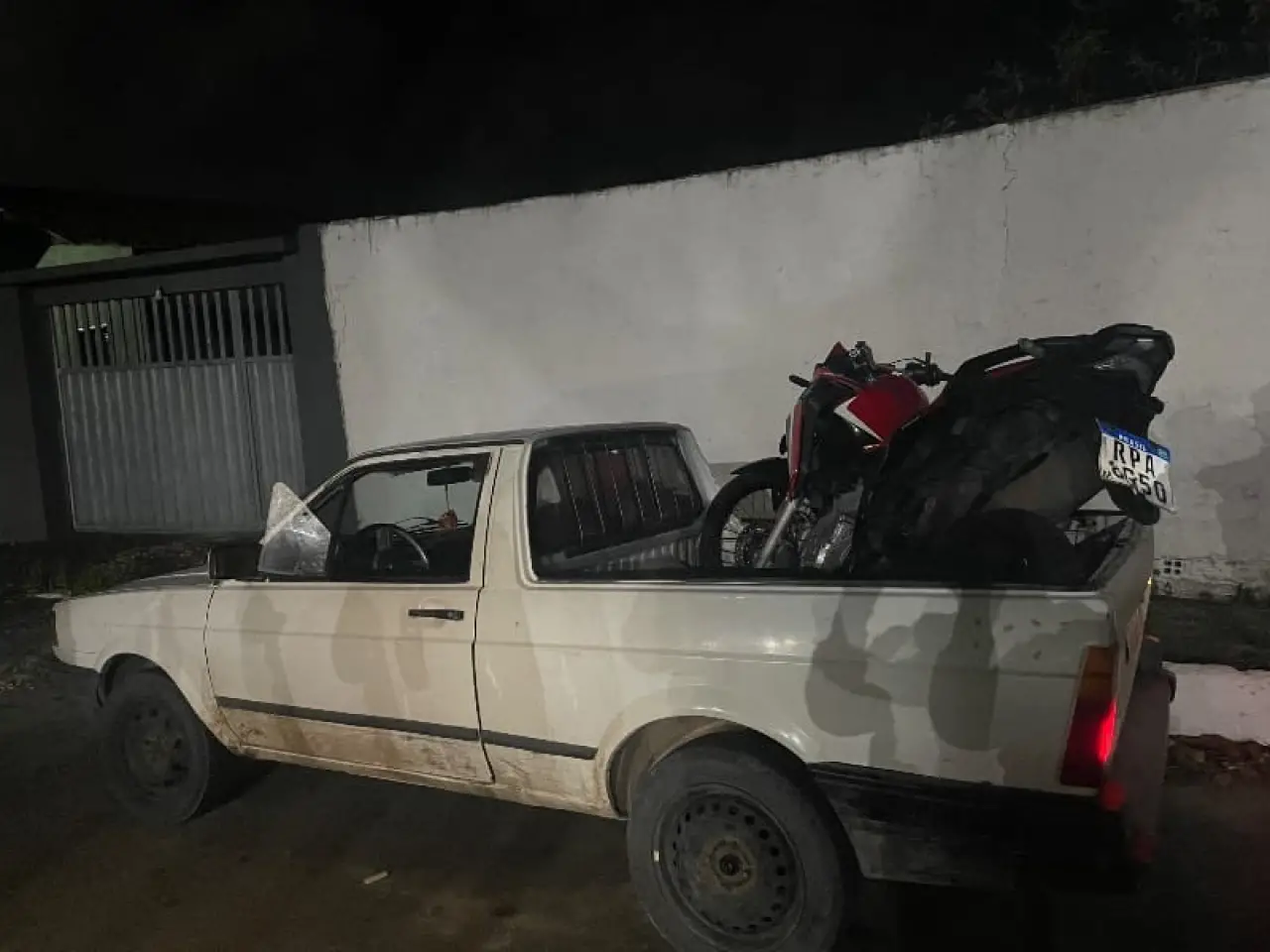 A motocicleta foi recuperada e, dentro da Saveiro, foram encontradas 12 chaves de veículos, indicando possível envolvimento em outras ações criminosas.