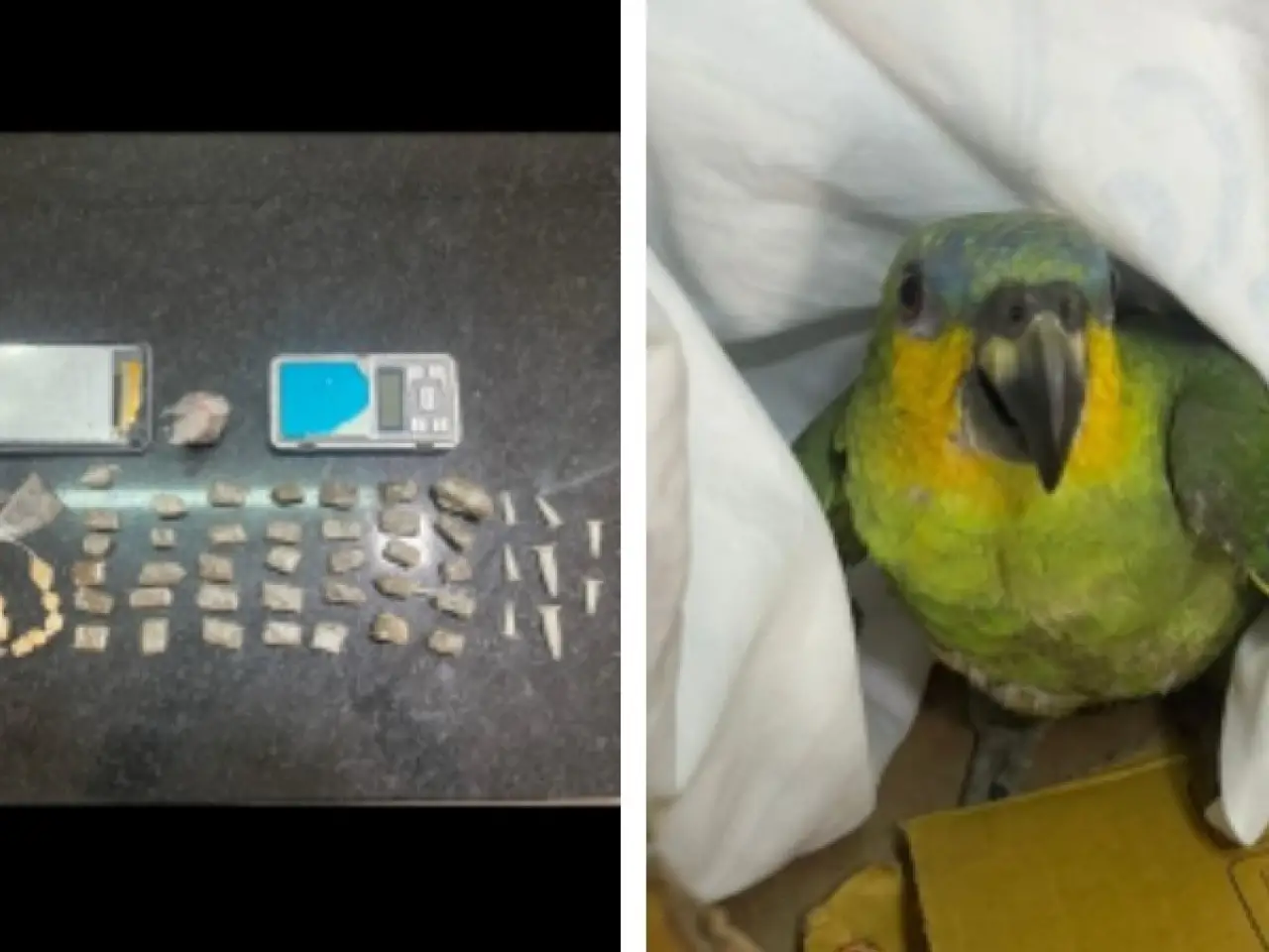 No interior do imóvel, os policiais localizaram um papagaio, animal da fauna silvestre, mantido em condições de maus-tratos.