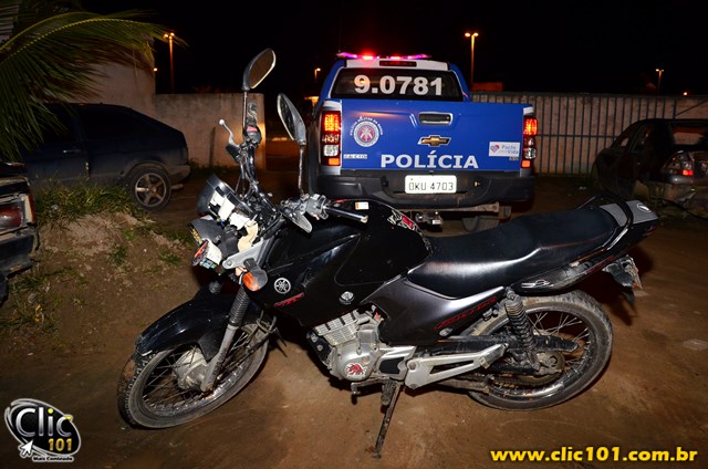 A motocicleta foi levada pela Polícia Militar para a Delegacia local, onde o condutor se apresentou.
