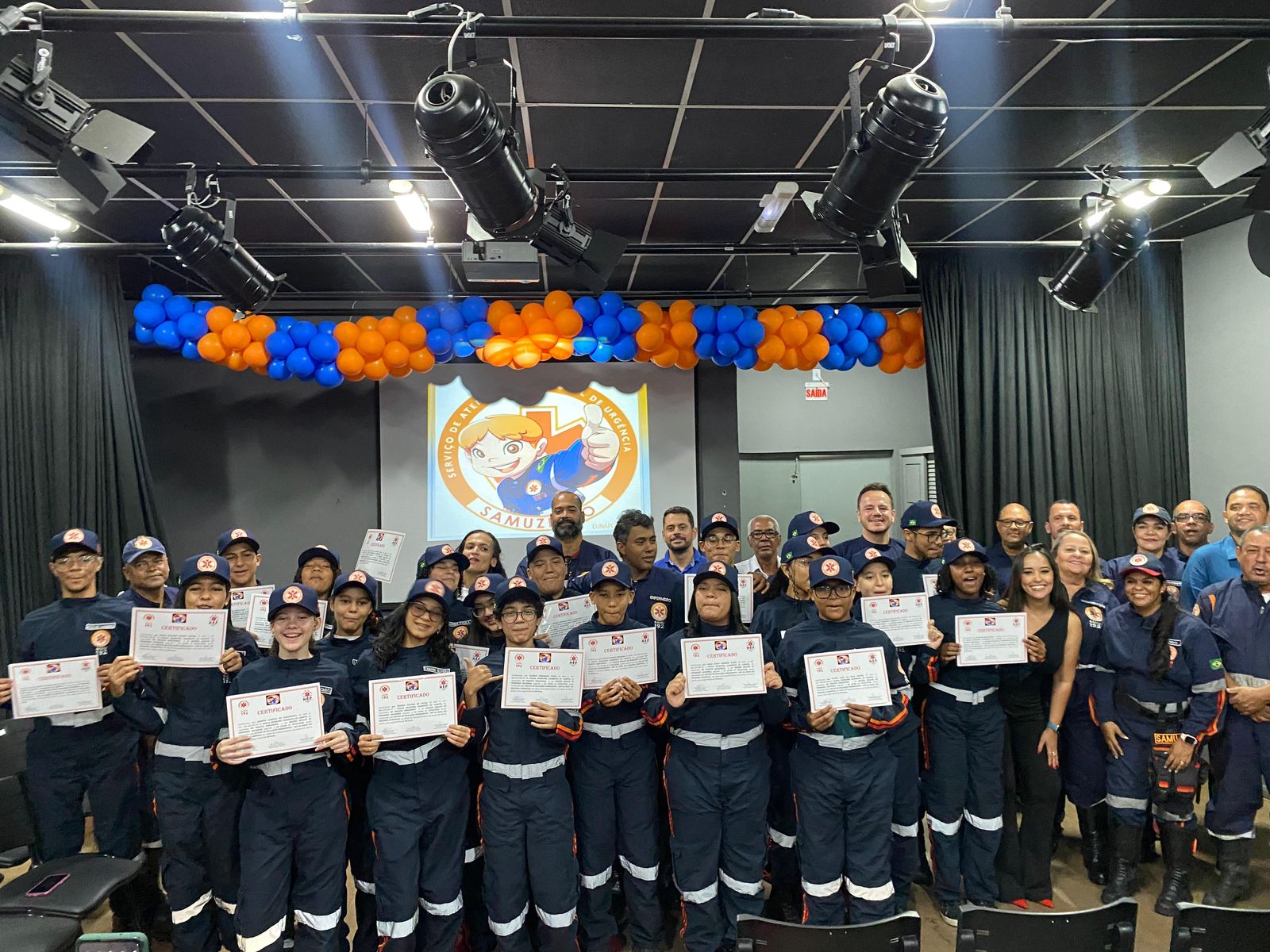 Na tarde desta sexta-feira (2), no auditório da Praça da Integração, foram entregues os certificados aos 20 alunos da Escola Municipal Humberto de Campos, que participaram da primeira edição do projeto SAMUZINHO, implantado pelo SAMU Regional de Eunápolis, em parceria com as secretarias municipais de saúde e de educação. Este projeto foi implementado localmente neste ano como um projeto piloto com duração de três meses.