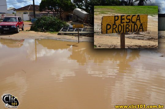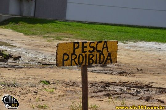 Coincidentemente, aproveitando o período de proibição da pesca do robalo, e talvez querendo contribuir com os órgãos ambientais e o Ministério da Pesca, cidadão bem humorado aproveitou e colocou na lagoa formada no início da Avenida Guaratinga, uma das mais movimentadas da cidade, ali bem em frente a oficina do Jojó, uma pequena mas providencial placa: “PESCA PROIBIDA”.