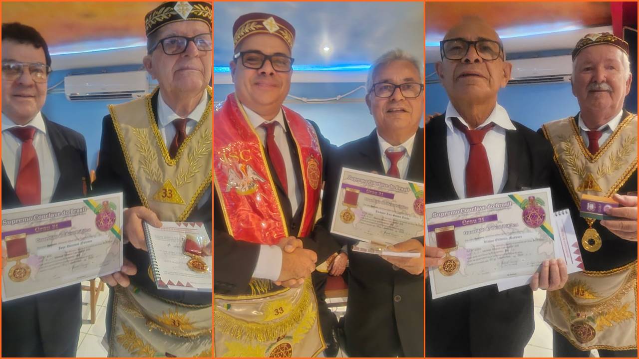 No Alto Colégio Manoel Ribeiro Carneiro, em Sessão Magna presidida pelo Egrégio Mestre Emerson Vasconcelos, colaram Grau 31 os Irmãos José Daumas Nolasco, Jackson Luiz Souza Rocha e Walmi Oliveira Marques.