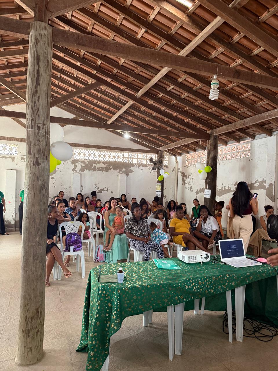 A ação foi realizada na Pastoral da Criança do bairro Juca Rosa, com uma progração contemplando um dia de acolhimento, roda de conversa, entrega de enxoval e confraternização.